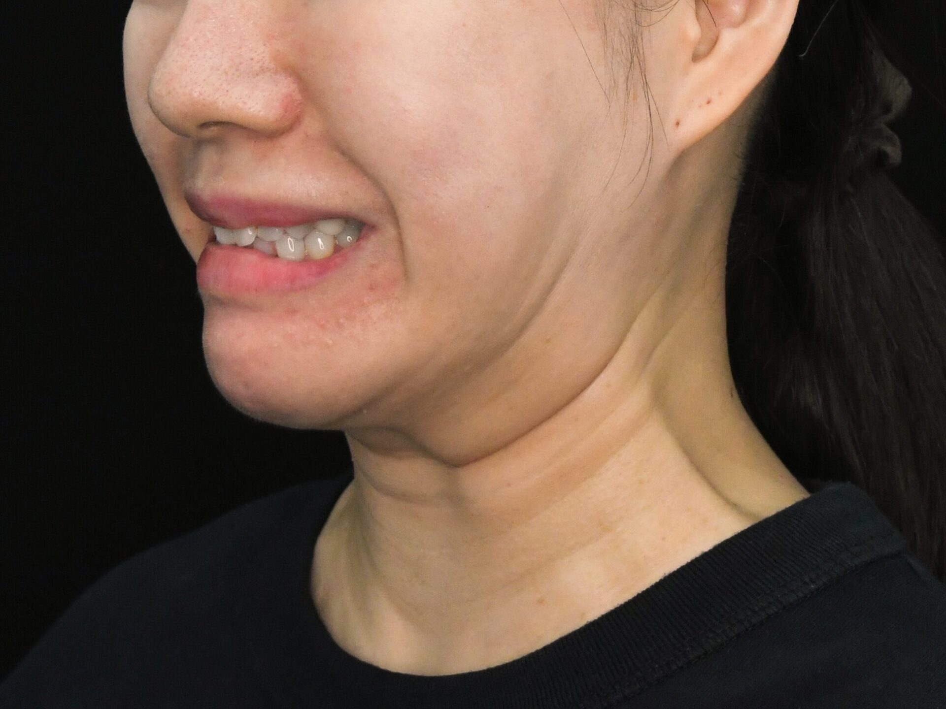 このモニター様は、もともと広頚筋の力が非常に強い方でした。