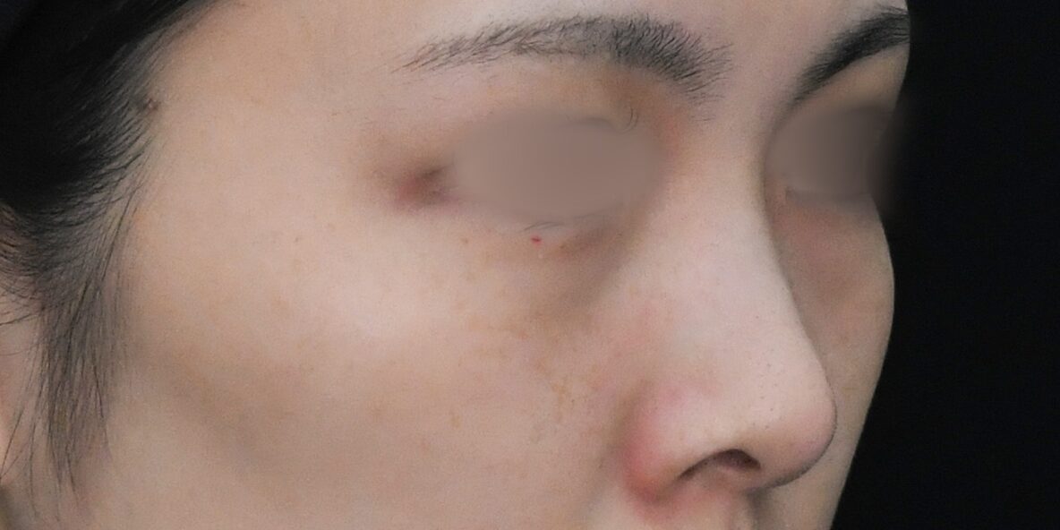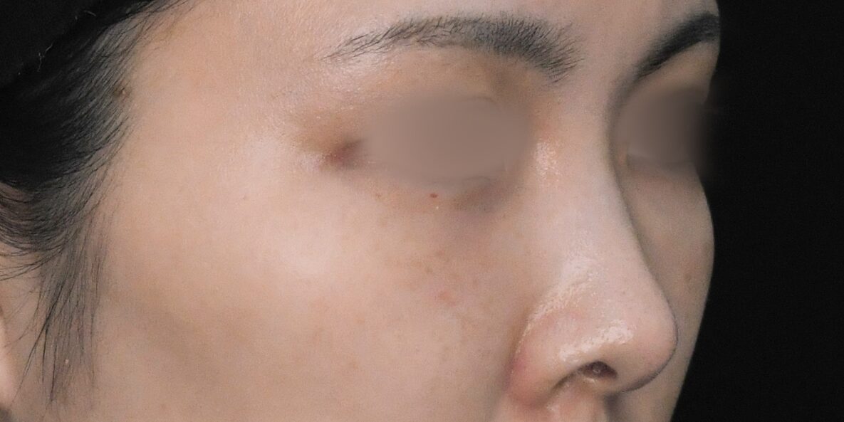 施術後の斜めからの写真では、目の下から頬に向かってなだらかな曲線で綺麗なふくらみが形成され、全体として若々しい印象が感じられます。