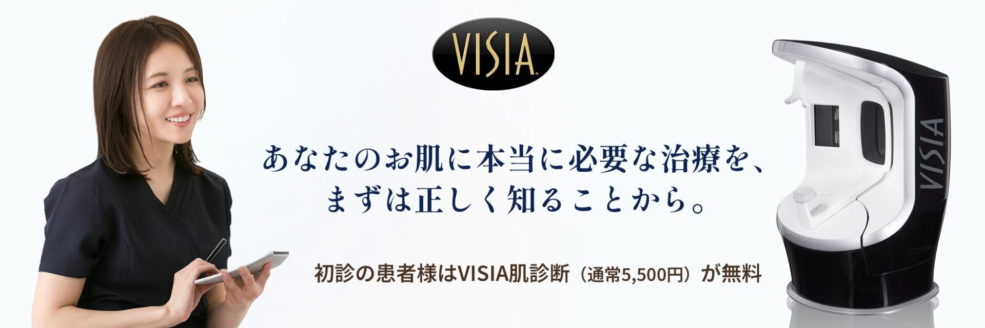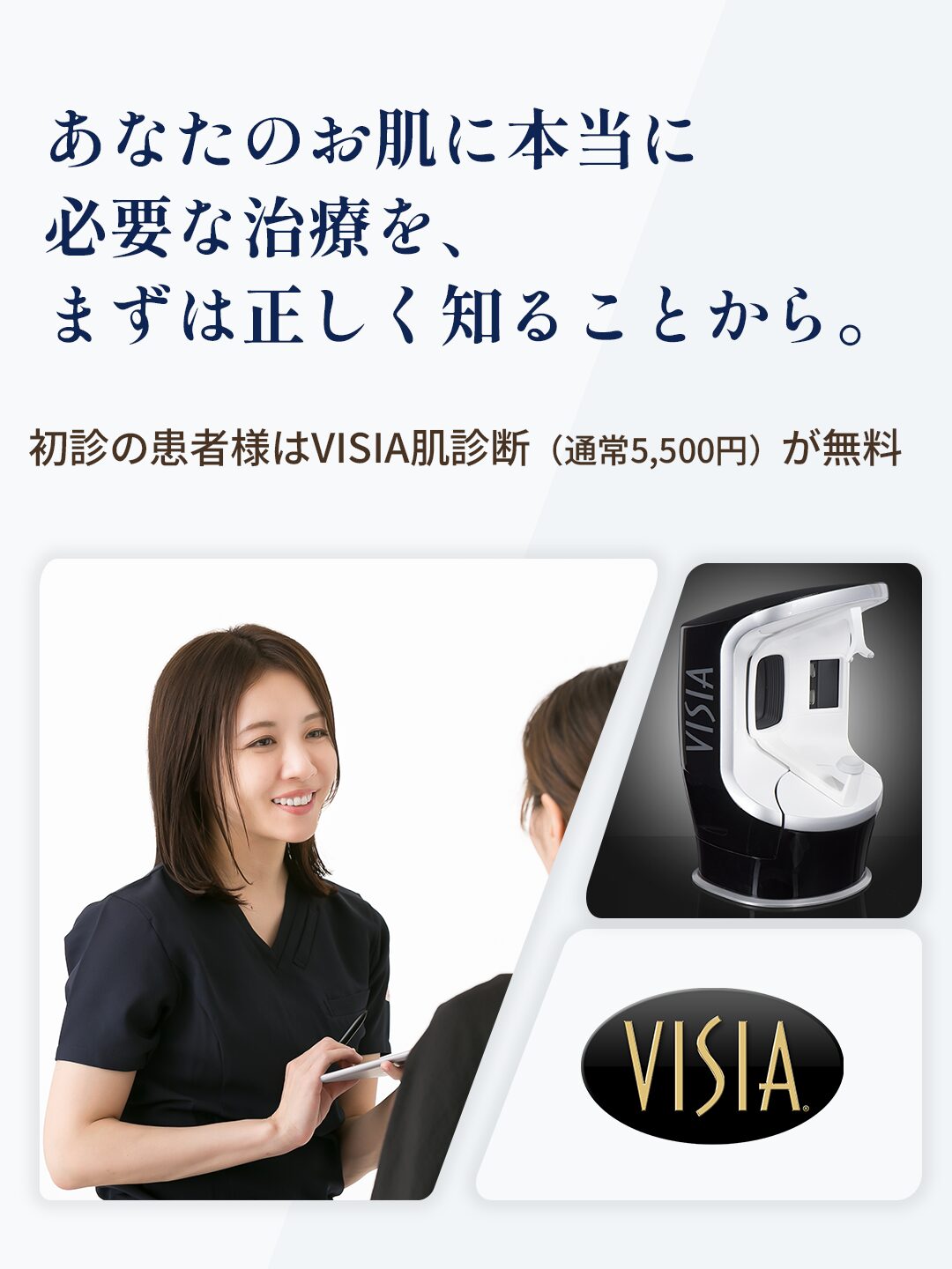初診の患者様は まずはご自身のお肌を正しく知っていただくため、VISIA肌診断(通常5,500円)を無料でご案内しております。
