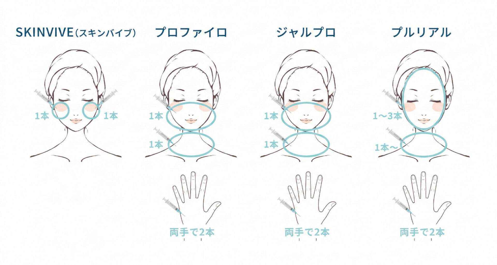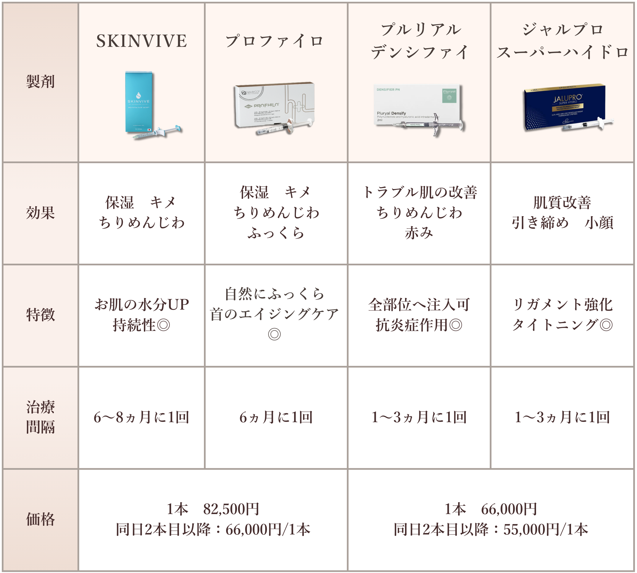 肌育製剤の種類はたくさんありますが、当院では以下の4つの製剤を取り扱っています。
